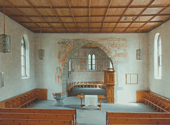 The Johanneskirche auf Burg in Stein am Rhein is an architectural gem. It is the oldest and earliest-documented church in the Canton of Schaffhausen. The wall paintings in the choir, which date from the period just before 1420, are particularly fascinating. Thirty pictures in three cycles depict scenes from the Christianity’s salvation history and many of the motifs are unique in the whole of Switzerland.