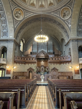 With its elevated position, dome and slender church tower, the Enge Reformed Church dominates the cityscape of the left bank of Lake Zurich. It is the most famous work of the Zurich architect Alfred Friedrich Bluntschli and is representative of the city’s liberal Protestant identity at the end of the 19th century.
